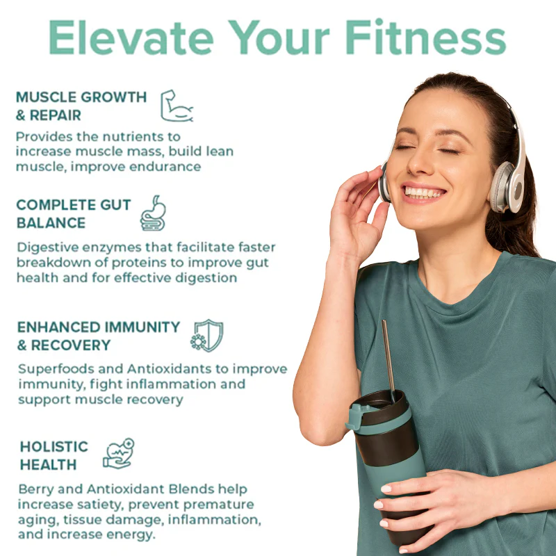 A premium quality, all-in-one formulation with a blend of Golden European Pea Protein Isolate, Brown Rice Protein Isolate, Chia Seed Protein, Natural Superfoods & Digestive Enzymes. This vegan protein powder is scientifically-developed to give you clean and complete nutrition for holistic health along with enhancing your daily work-out.