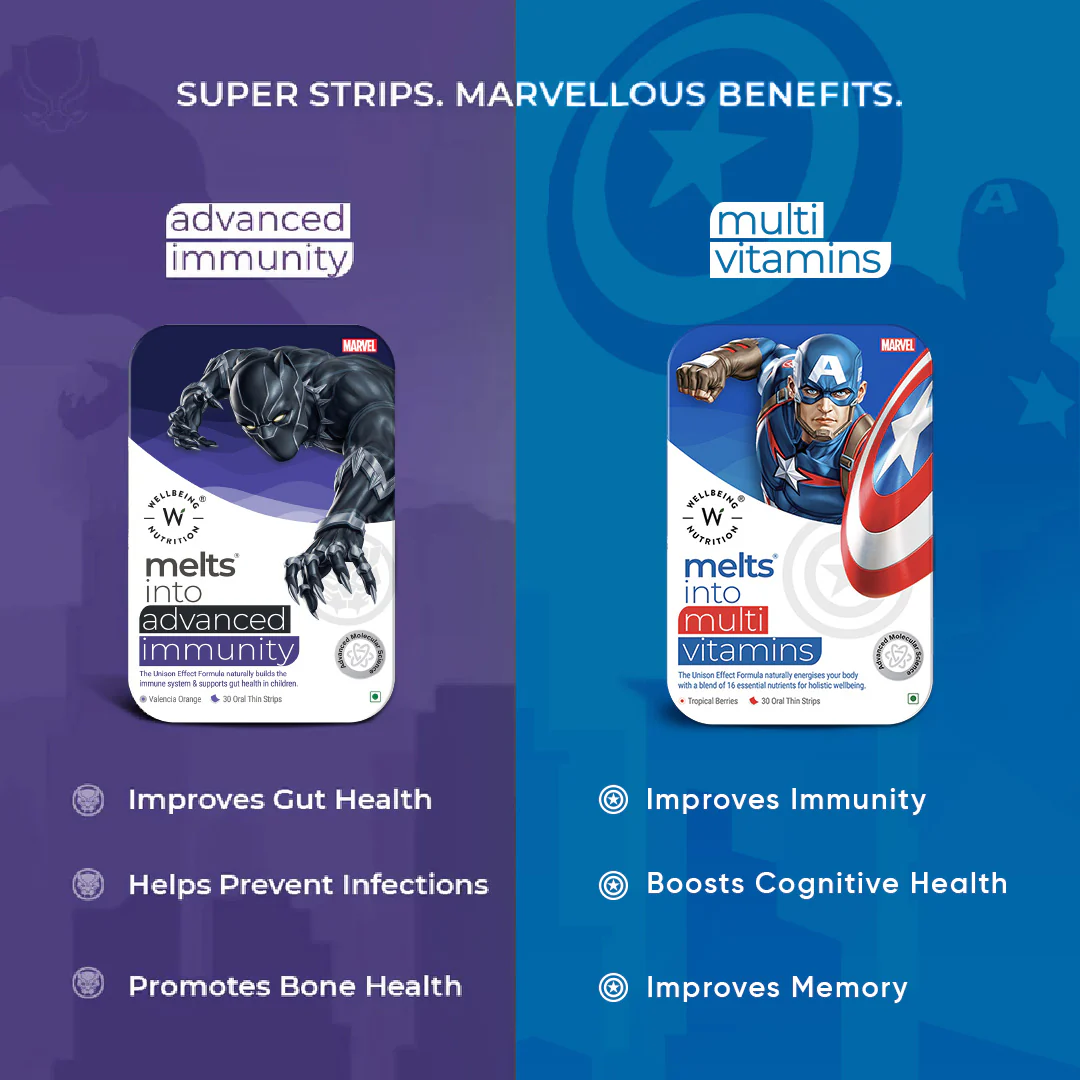 Let your little superhero suit up for a healthy battle and be invincible like Iron Man. Armoured with vital nutrients like Organic Vitamin B12, D3+K2 and Folate, this delicious melt-in-your-mouth strip will provide your genius with the daily boost he needs.